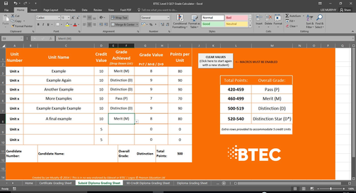 Btec Level 3 Qcf Grade Calculator Teaching Resources