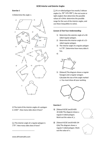 Two Worksheets On The Interior Exterior Angles Of Polygons Teaching Resources