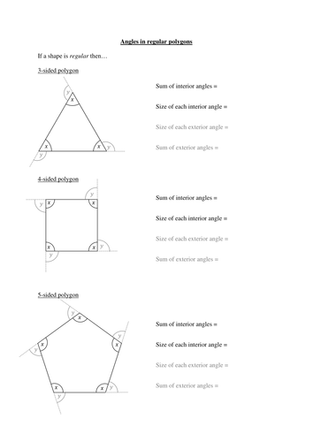 Sum And Interior Angles Worksheet Teaching Resources